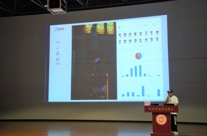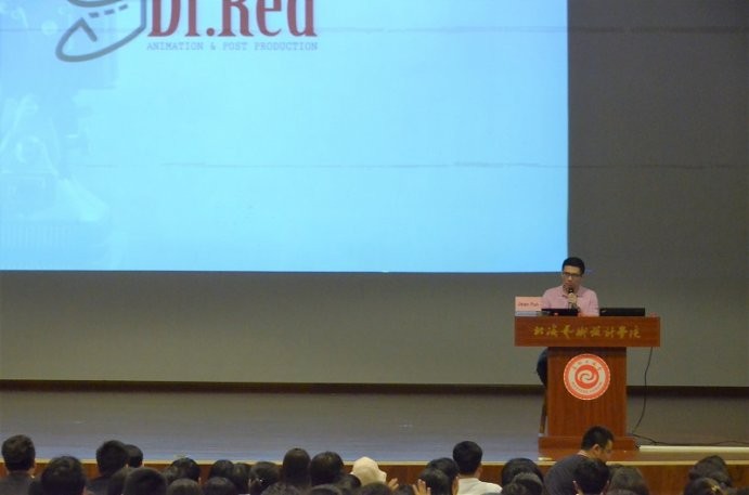 接着,由黄光宗总监给我们展示Dr.Red公司的优秀作品《小姜丝》、《油鬼》,并介绍公司的合作伙伴、领导阶层等,让同学们更加深入了解Dr.Red公司。随后,黄光宗总监向大家讲述自己在校求学时,从一个“门外汉”到动画导演的转变,使大家产生浓厚的听讲兴趣。他表示同学们既然选择了动画专业,就要风雨无阻的学习下去,有一份耕耘才会有一份收获。