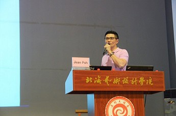 讲座伊始,Jean Poh给大家讲述他在国外工作时的趣事,从而引出大众对动画行业的看法——“神龙见首不见尾”、难以接触 ,并提出“动画行业=娱乐业”这一新的理念,引起在场师生强烈的好奇心。