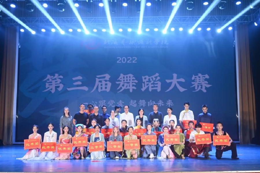 为深入学习党的二十大精神,加强舞蹈表演专业实践,推出一批宏扬中华文化、继承革命传统、反映新时代、新风貌的优秀舞蹈作品,丰富大学生的校园文化生活,2022年11月20,北海艺术设计学院在西校区大礼堂举办“一心跟党走,齐舞向未来”第三届校园舞蹈大赛决赛。
