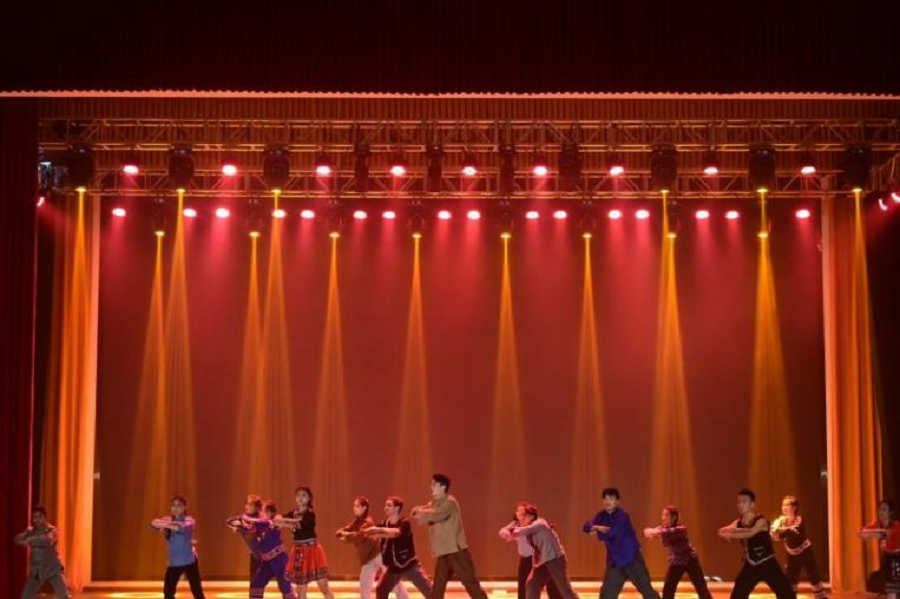 夜晚场是舞蹈群舞组的比赛北海市文艺创作研究所一级编导钟丽春,学校设备与信息处处长李德贤副教授,舞蹈专业教授殷强,副教授杨建中、曾凡冰担任舞蹈群舞组评委嘉宾。