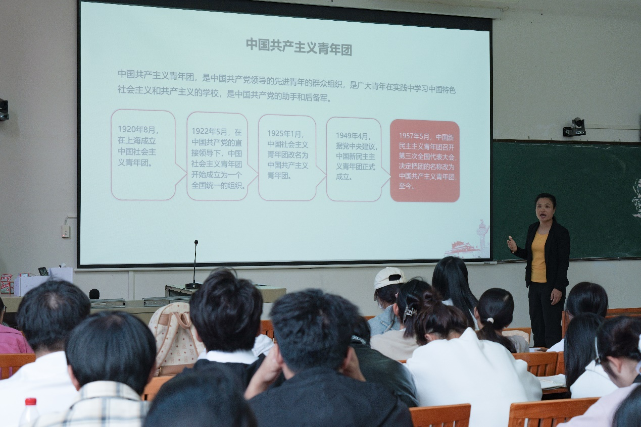 培训第二讲中,文学院分团委书记马有泽老师进行《国家安全教育》专题课程,详细介绍了中国共青团的发展历程,激励学员们要勇于承担使命,勤于学习、敏于求知,将个人理想与国家前途相结合,为实现中华民族伟大复兴贡献力量。