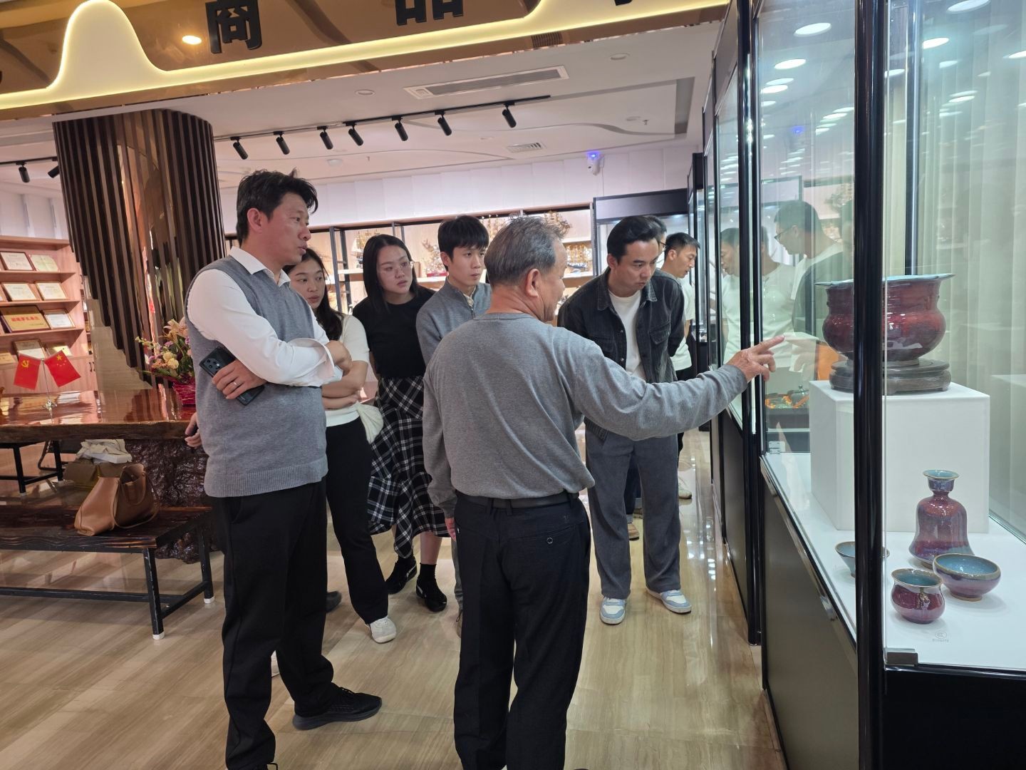 调研最后一站,团队走进白耀华艺术馆,沉浸式调研合浦角雕艺术与技艺。教师们近距离观摩角雕创作过程,详细了解其传承脉络与创新实践,围绕传统非遗技艺与现代文创品牌融合的路径展开深入探讨,为打造兼具文化底蕴与市场活力的新潮文创产品汲取创作灵感。