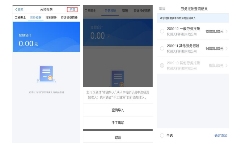可在对应列表明细界面,点击【新增】,选择【查询导 入】,在查询结果界面勾选相应收入后可带入。