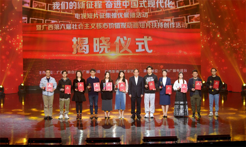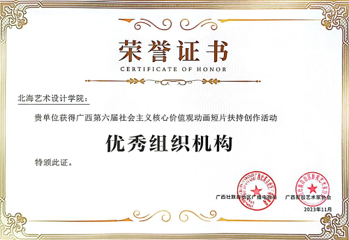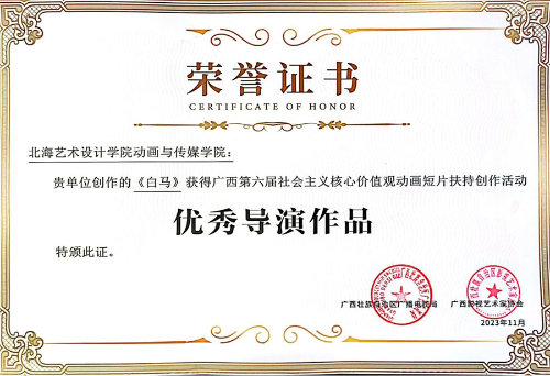 11月23日晚,由广西广播电视局与广西影视艺术家协会联合主办、广西广播电视台承办的“我们的新征程 奋进中国式现代化”电视短片征集推优展播活动暨广西第六届社会主义核心价值观动画短片扶持创作活动揭晓仪式在南宁举行。我校动画与传媒学院报送的作品在此次评选中入围作品2项、获得优秀导演作品奖1项,学校获得优秀组织机构奖。动画与传媒学院动画教研室主任吴锡红、动画专业教师周亭、崔兢瑞代表学院出席活动并领奖。