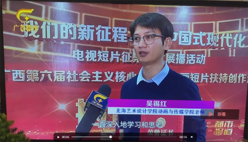 活动现场,我校吴锡红老师在接受广西电视台记者的采访中说道:“在这次活动中,看到学生们在创作中一直深入地学习和思考,以及领悟社会主义核心价值观。此次获奖,这不仅是对于我们能力的一个体现,也是对我们专业教学的一个认可。此次活动的成功组织,也体现了我们学校一贯的教育理念,我们始终注重学生的全面发展,鼓励他们关注社会、关注生活,用自己的专业知识和技能去创造和传播正能量。”