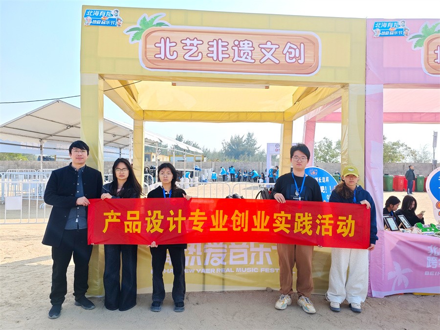2024年12月31日至2025年1月1日,北海热爱音乐节在北海国际帆船码头举办,我校作为此次活动的文创展区参与方,设计艺术学院产品设计专业师生在现场设立了独特的非遗文创产品展位,吸引了众多游客和音乐爱好者的目光。