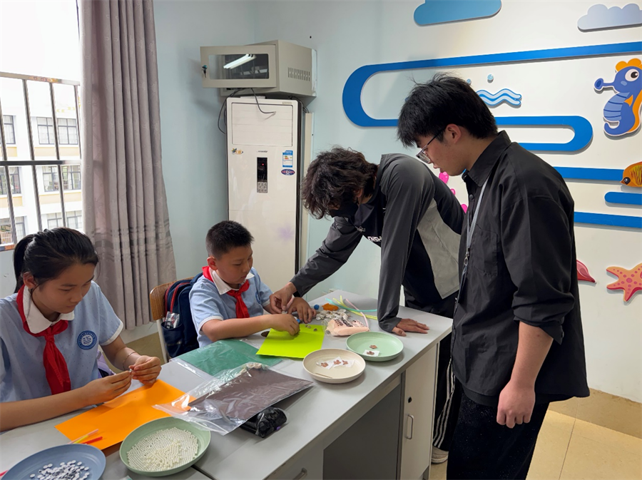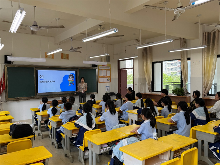 北海艺术设计学院附属学校美术教师则表示,这种“玩中学”的模式深受学生欢迎,大家在手工课上变得更加积极、勇于展示了。课程结束后,许多小朋友还会主动把掉在操场上的贝壳捡回教室,表示不能浪费大自然的礼物。