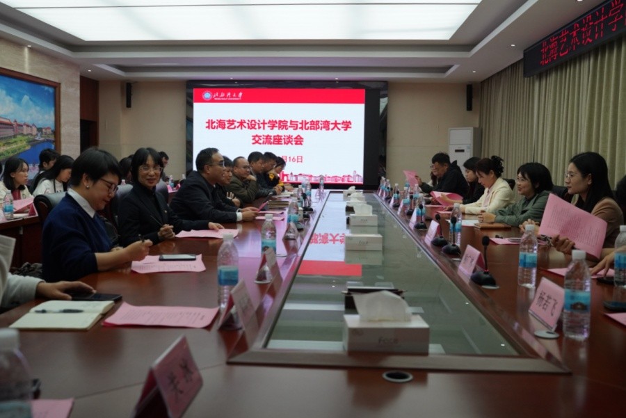实地考察结束后,双方召开专题交流座谈会。北海艺术设计学院调研团队与北部湾大学学生工作相关部门负责人,围绕 “一站式” 学生社区建设路径、资助育人实践基地运营模式、心理健康教育工作体系构建、辅导员专业化发展机制、思政品牌活动打造及兵员预征预储工作推进等核心议题,开展深度交流研讨。北部湾大学详细分享了各项工作的探索历程、创新举措及典型经验,我校调研团队结合本校学生工作实际,就经验转化、实践适配等问题积极提问、深入探讨,现场交流氛围热烈、成果务实。