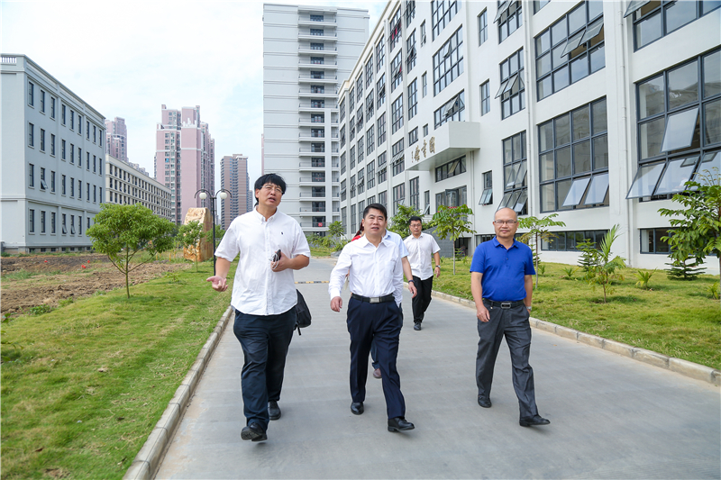 (李晓勇一行在我校领导的陪同下参观校园环境)
