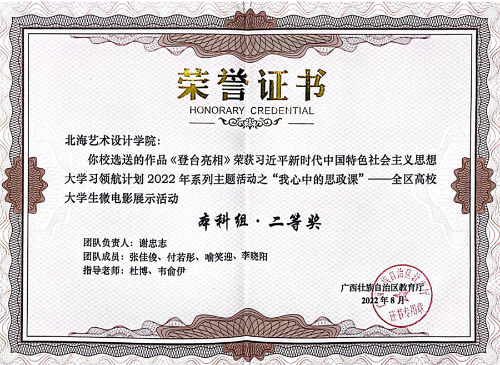经全区各高校初选推荐,自治区教育厅组织专家评审,认定了“我心中的思政课”全区高校大学生微电影展示活动优秀作品101部,其中,我校马克思主义学院、动画与传媒学院依托合作共建的思政课实践教学研习基地“红色影视创作室”,组织指导学生创作的作品《登台亮相》《黑手》分别获得“我心中的思政课”——全区高校大学生微电影展示活动本科组二等奖、三等奖。