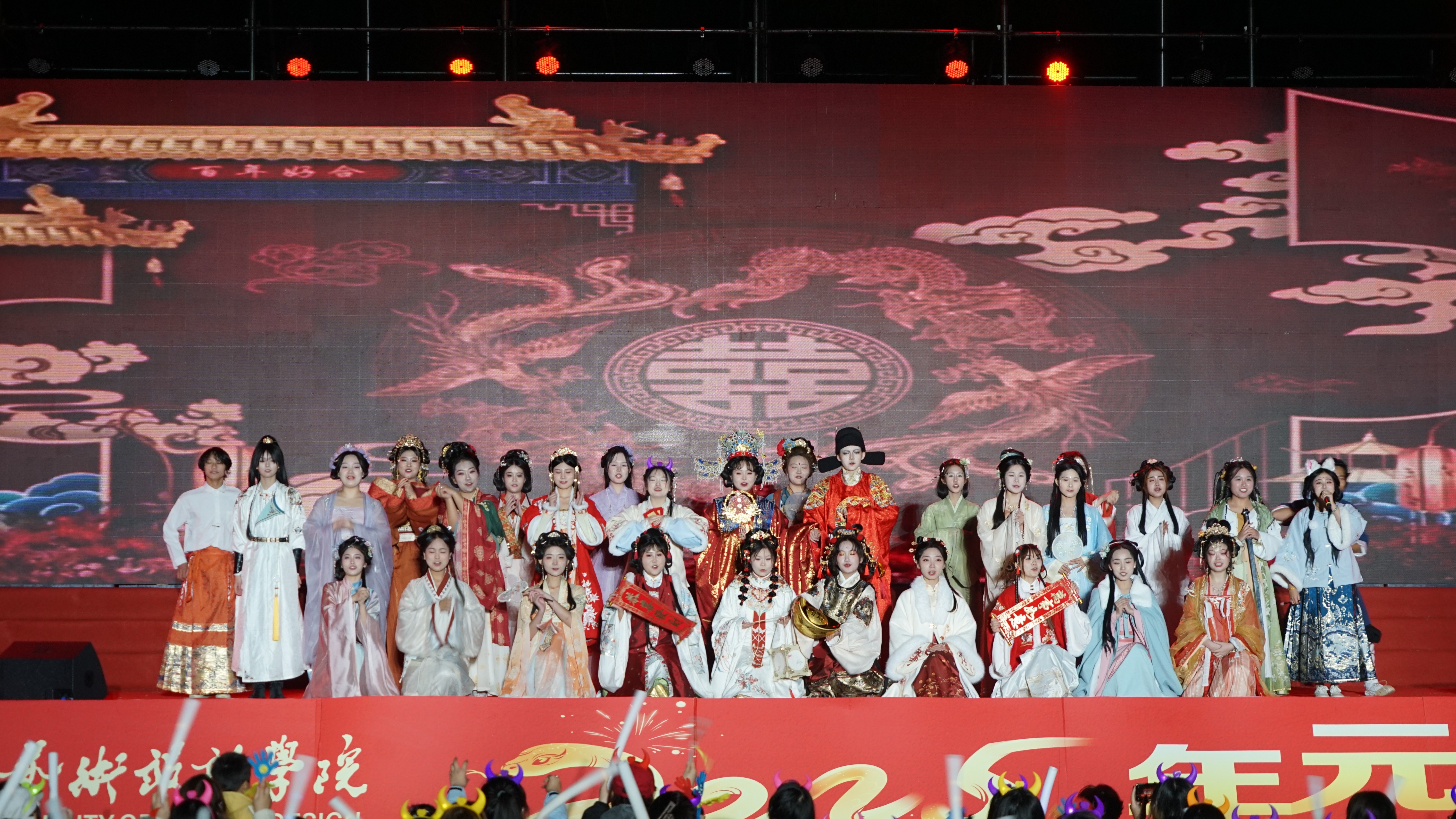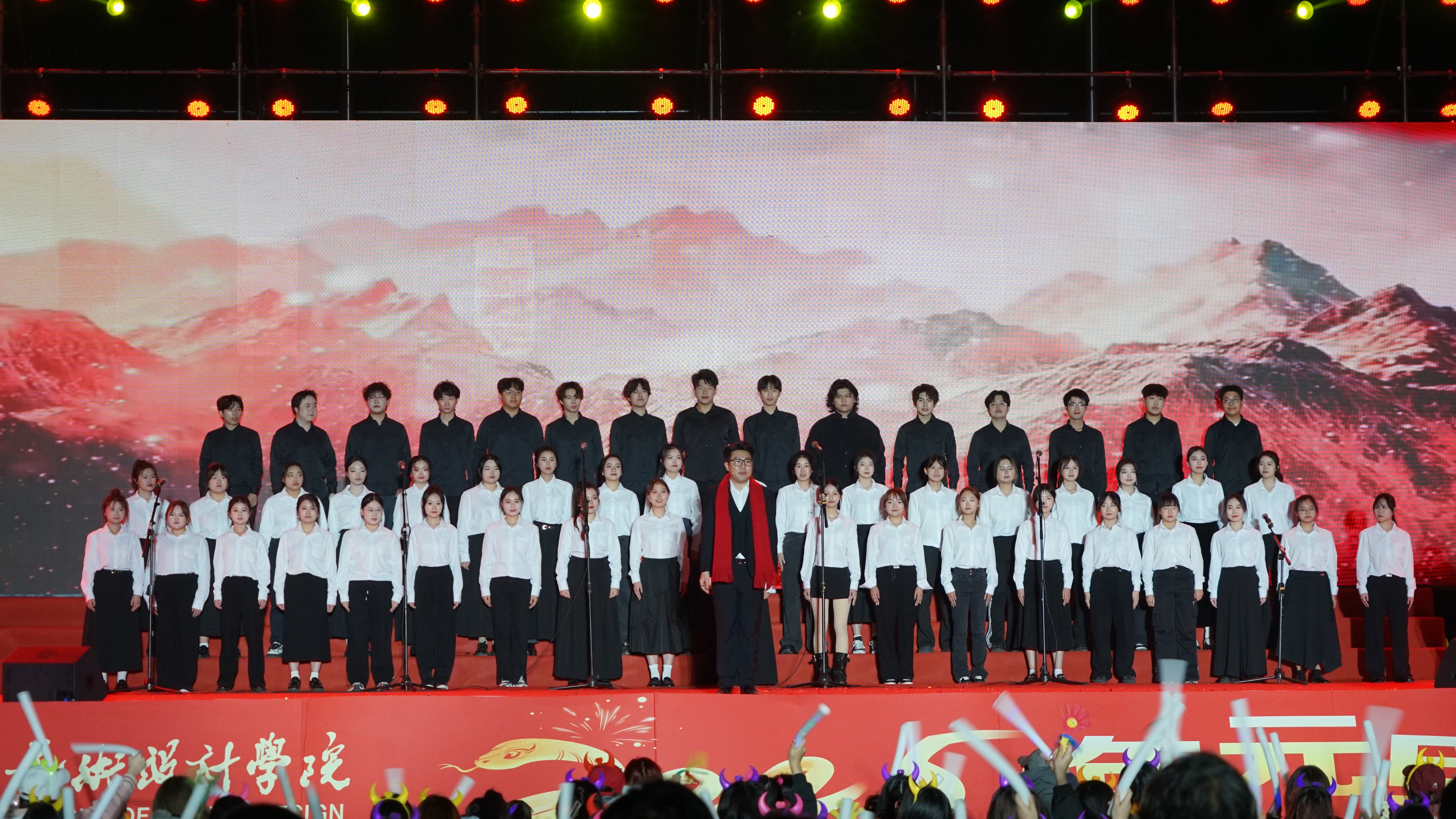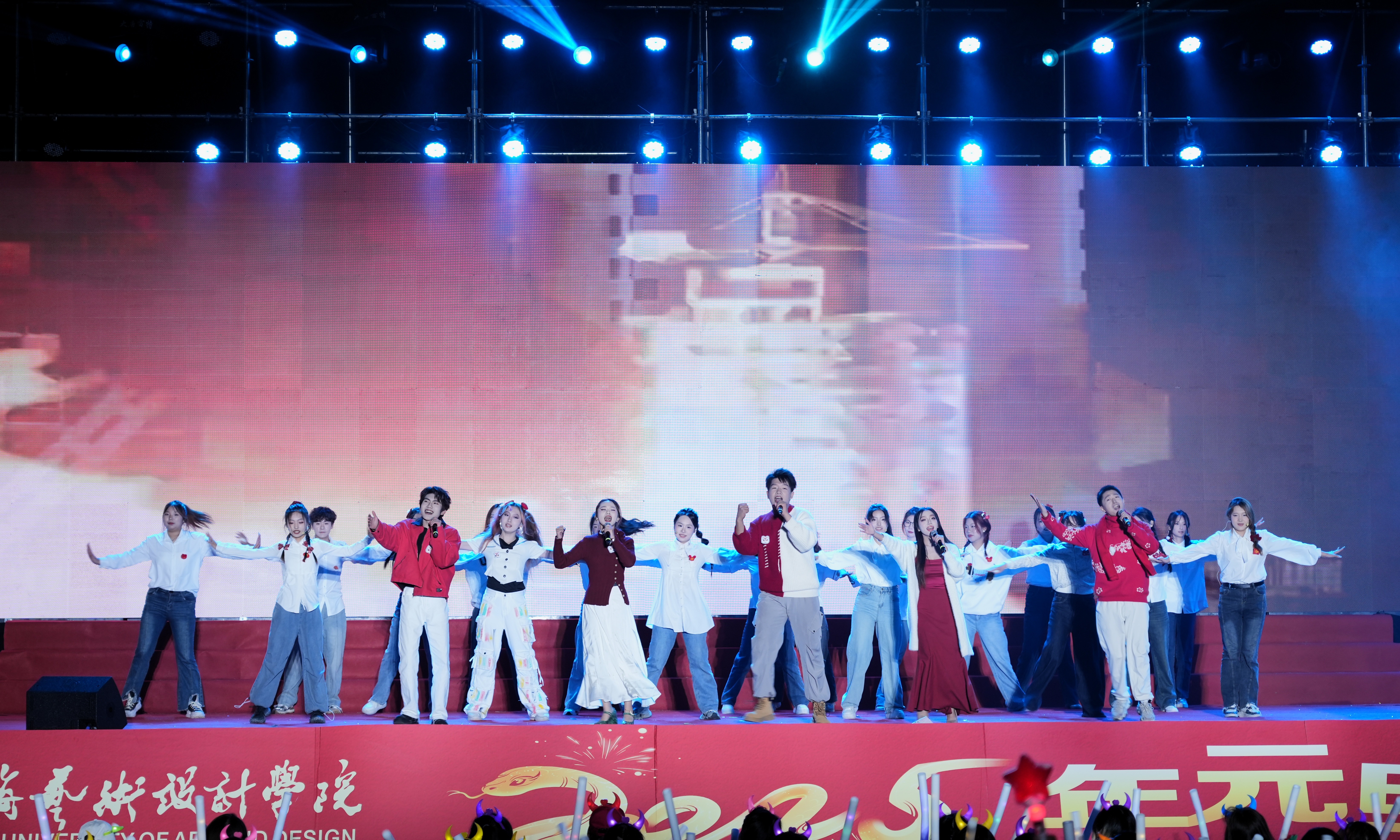 时光荏苒,2024年步入尾声,2025年的元旦佳节即将来临。在这个辞旧迎新的美好时刻,我校于12月29日晚,在西区操场举行“艺韵新程,共绘华章”——2025年元旦晚会,全校师生齐聚一堂,共同迎接新年的到来。