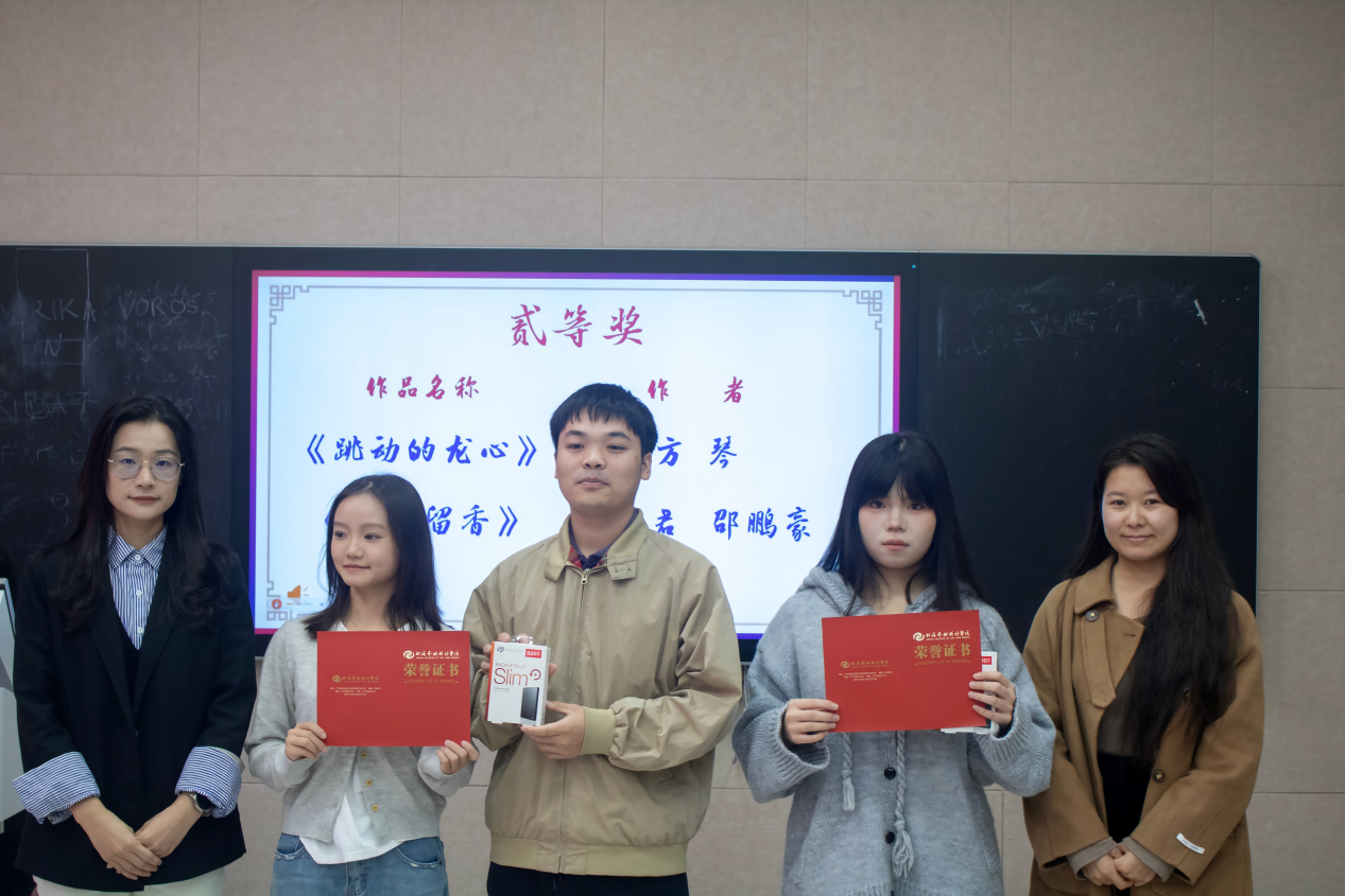活动伊始,主持人详细阐释了剧本征集大赛的举办宗旨——以文字为媒搭建戏剧创作交流平台,挖掘校园戏剧创作新力量。随后,伴随着热烈的掌声,获奖名单正式揭晓,参会嘉宾和教师依次为获奖学子颁发荣誉证书。