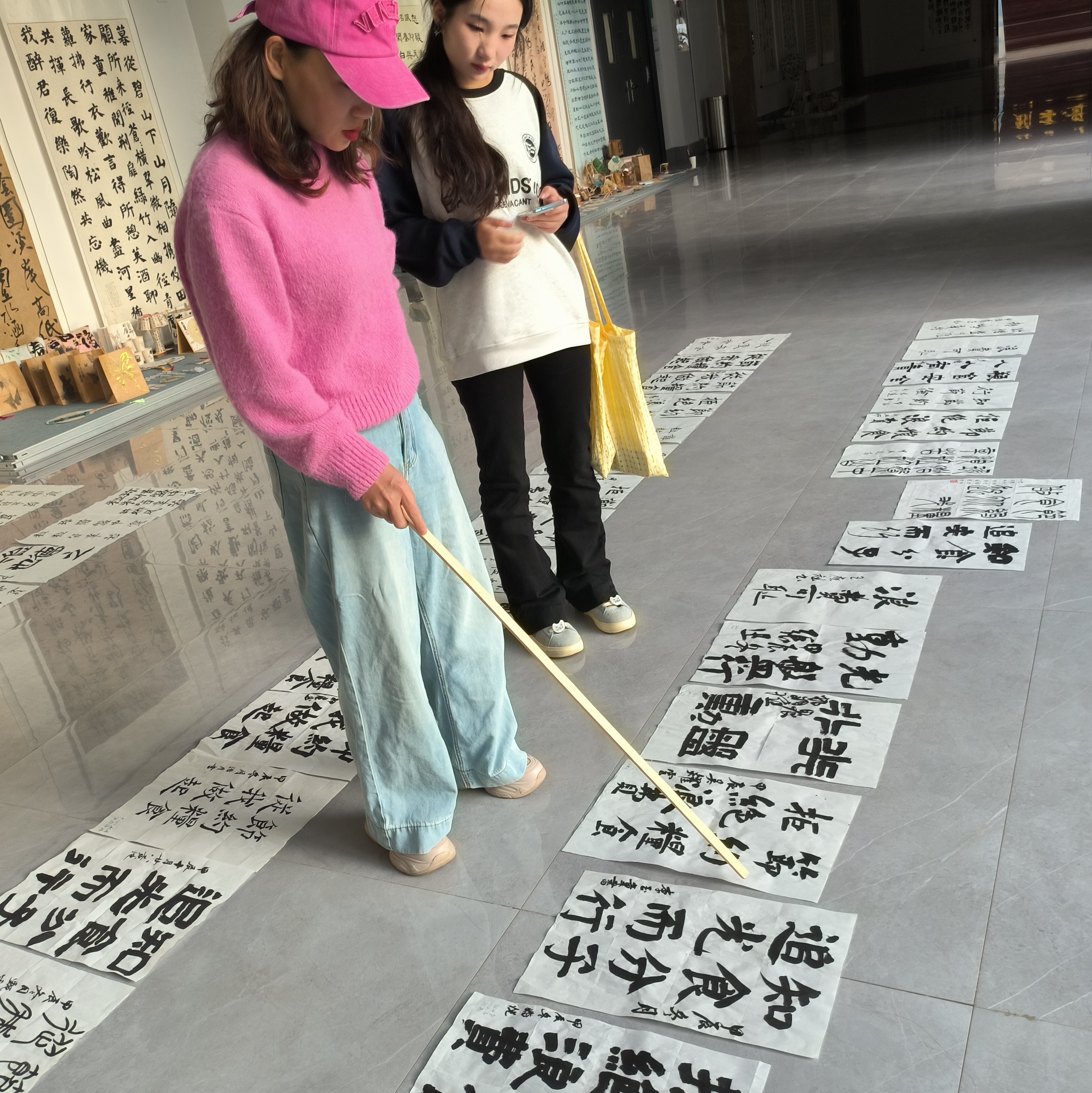 活动结束次日,书法学院党支部副书记左云飞,学工办主任、分团委书记李家琪,分团委指导老师石建玲对现场书写作品与集章打卡内容进行评分。