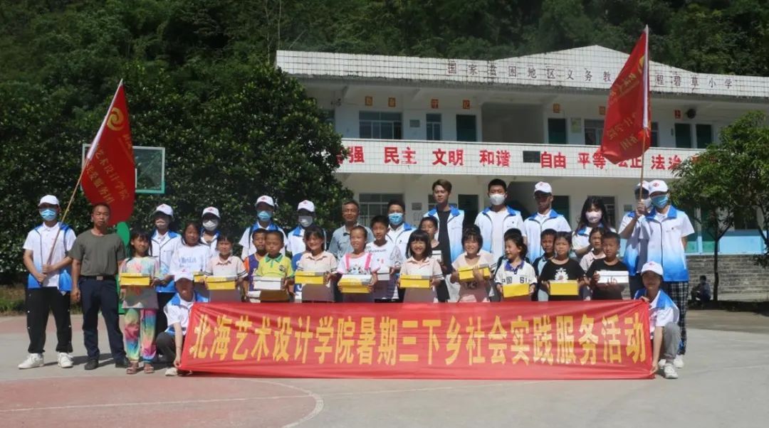 整个活动期间北海艺术设计学院乡村建设服务团,都在积极奉献,希望可以更多的帮助当地乡村的建设与发展,第二、第三天服务团的志愿者们又来到了碧草小学,将带来的学习用品赠送到学生手中,并为碧草小学设计了艺术支教课堂,让孩子们从艺术中体验乐趣、获得成长,同时我校乡村建设服务团的成员们分组深入乡村调研走访,深入本村的贫困户,将带来的爱心捐赠物资赠送到每一个需要帮助的农户手里。